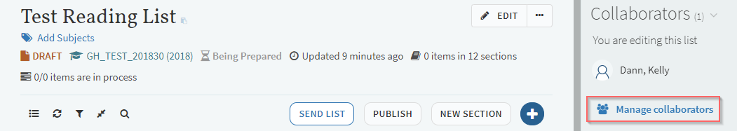 You can add additional ACU staff as “Collaborators” to view and edit a Reading List.