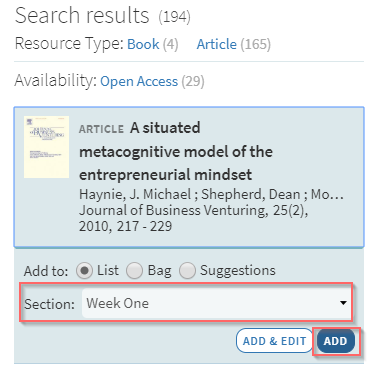 To search for citations to add to your reading list, follow the steps below.