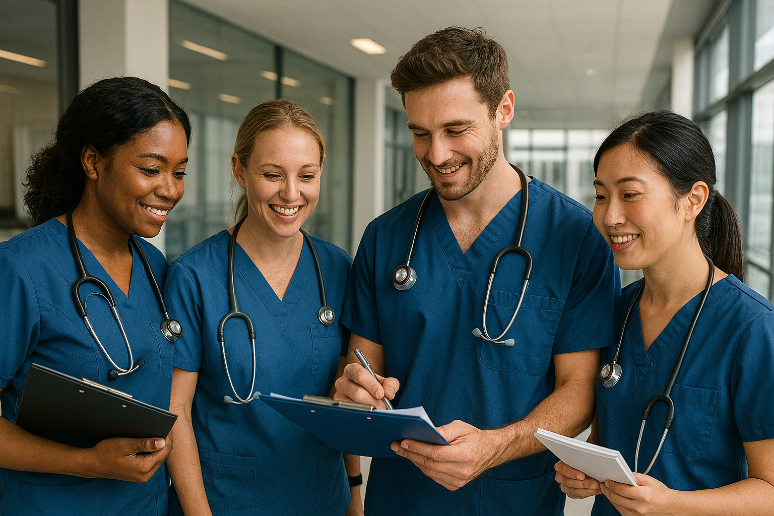 Note. Image created in ChatGPT from the prompt 'create an image of a group of nurses working together in a modern hospital setting'.